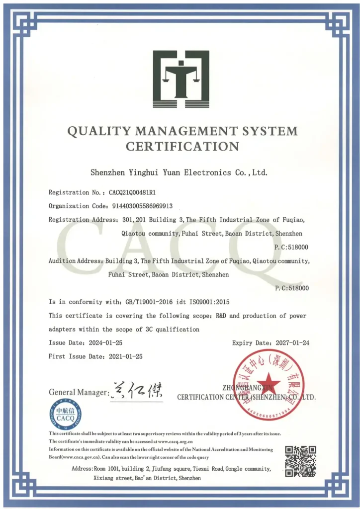 Our ISO 9001 factory uses the latest technology, including GaN, to achieve industry-leading energy efficiency (DOE Level VI compliance). This lowers your product’s operating costs and heat. All units built-in multi-protection mechanisms: Over-Current (OCP), Over-Voltage (OVP), Over-Temperature (OTP), and Short-Circuit Protection (SCP), ensuring flawless operation of your end device.